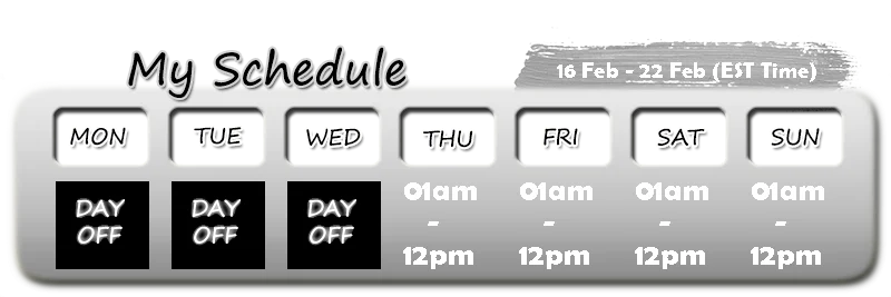 Tarian Erotis, Melenturkan, Berkedip, Merokok, Ejakulasi, Dirty Talk, Fetish Kaki, Masturbasi, Pertunjukan Minyak, Memukul, Tingkat Penis, Dildo show (2000tkn+Pvt), Pijat, Orgasme, Penghinaan, Instruksi Masturbasi, CEI, Air mani, Meraba, Pra-ejakulasi, Pompa, SPH, Striptis